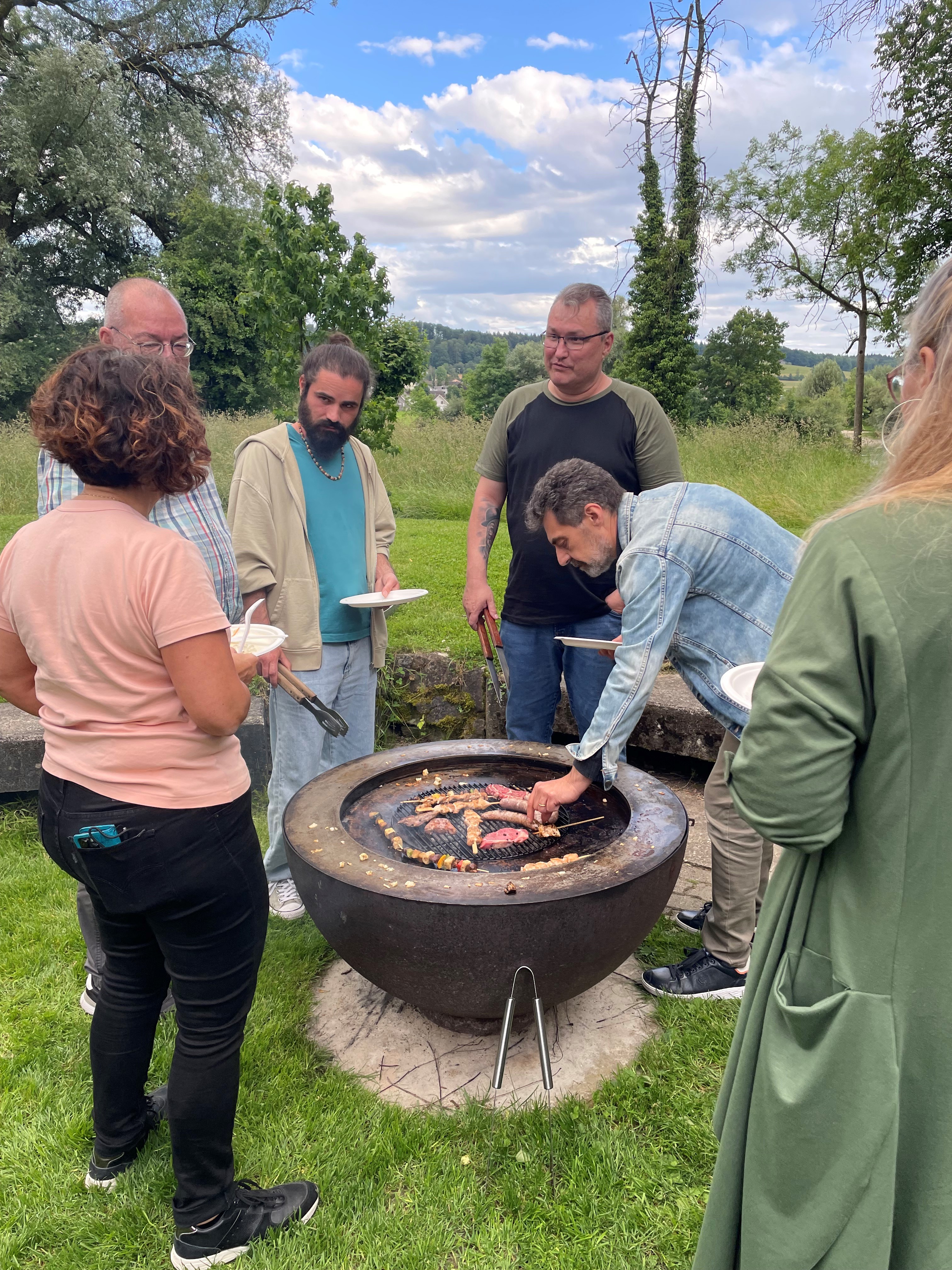 Das Netzwerk-Sommer-Bräteln-Fest am Freitag, 14. Juni 2024 – traditionell im Kanu-Club Grenchen – war wieder laut, lustig und vor allem lecker! Nach einigen Versuchen, die Feuerschale anzufeuern, hat schliesslich der Geschäftsführer höchstpersönlich das Ruder in die Hand genommen und ein tolles Feuer gemacht, sodass all die köstlichen Fleisch- und Gemüsespezialitäten vom Grenchner Freitags-Wochenmarkt gegrillt werden konnten. Auch wenn das Abendessen für Schweizer Verhältnisse etwas spät anfing, haben wir es in gesitteter südländischer Manier spät, aber dafür herzlich gestartet. Das gemeinsame Streiten um die besten Stücke Fleisch (natürlich konstruktiv) zeigt, dass wir als Team auch ausserhalb der Gleitzeiten hervorragend funktionieren. Und diesmal bis fast zur Mitternacht.